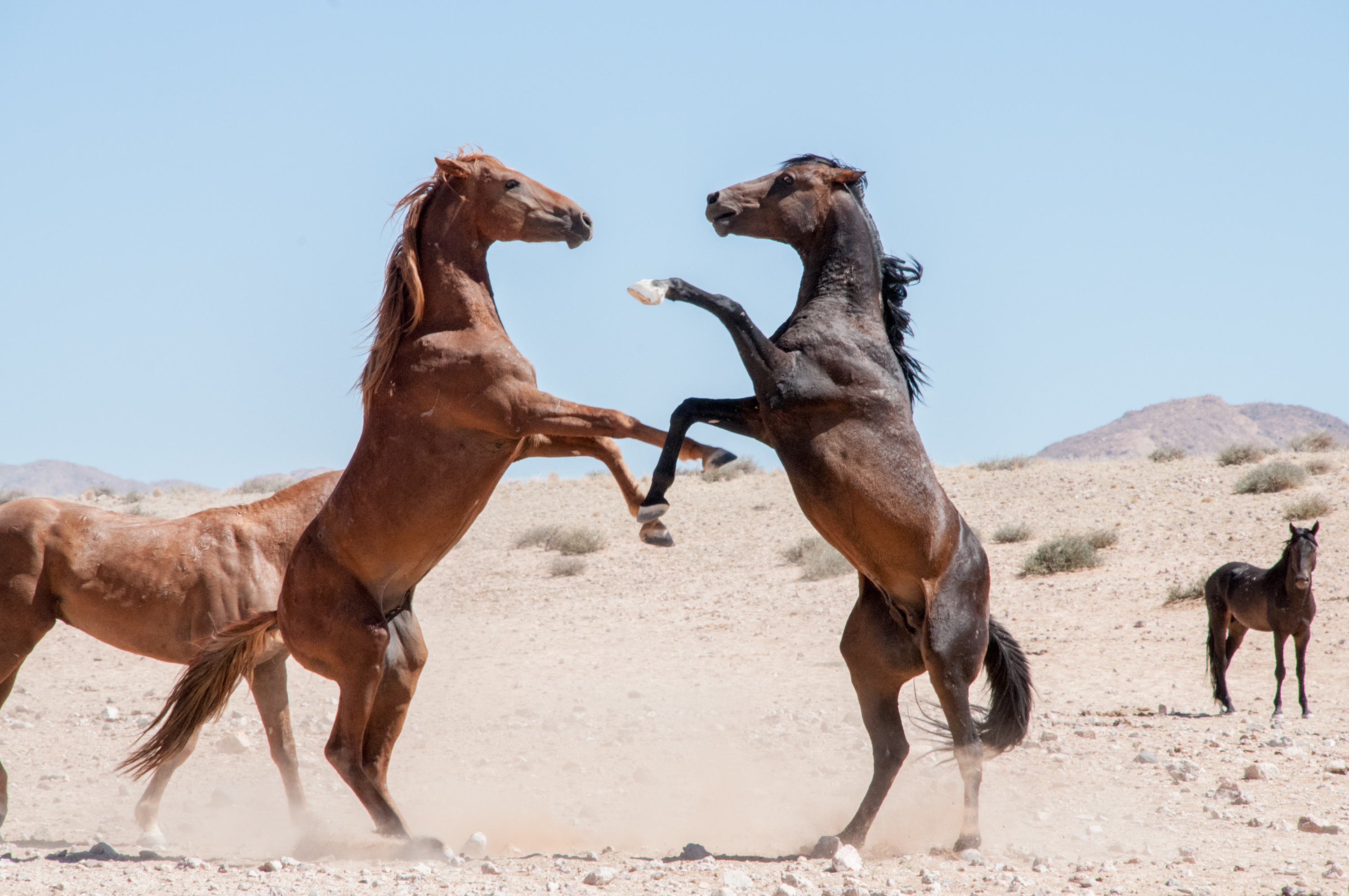 Die perde het verskeie vyande onder andere hiënas en jakkalse, maar op die oomblik, laat in 2015, gaan die Namib onder ‘n ernstige droogte gebuk. Verslae insinueer dat die perde selfs kan uitsterf indien hulle nie nou gevoer word nie.